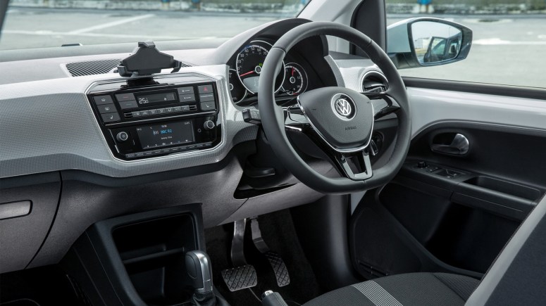We’ll move on. As well as experiencing the near-silent treatment as one zips by you, you can identify this e-Up by its signature C-shaped daytime-running lights and blue strip across the bonnet line.